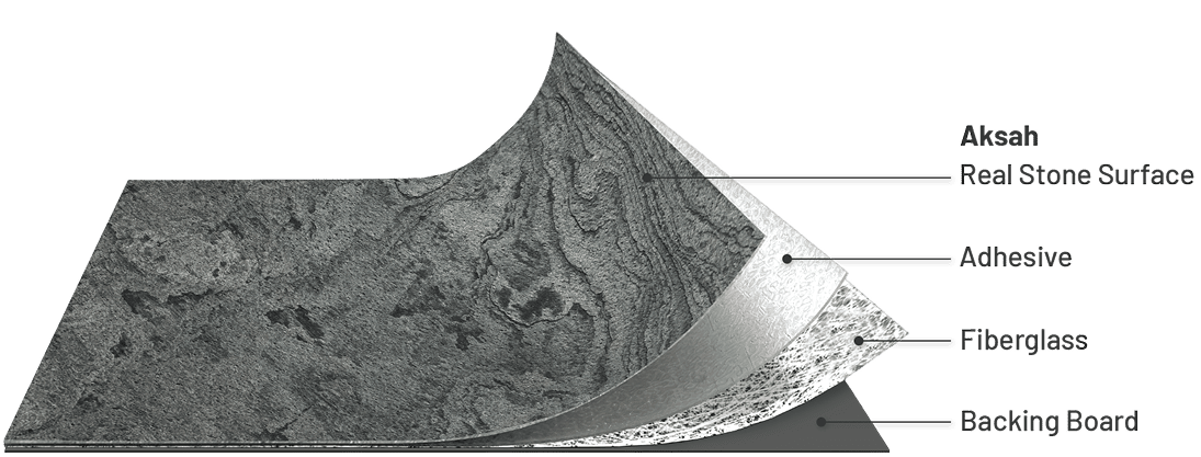 Our nature stone veneers can be installed at least 6 times faster than traditional stone slabs or porcelain, requiring significantly less labor, yet still providing the best results. The weights are: 24”x48” sheets range from 3 – 5 lbs, 48”x96” from 11 – 16 lbs, and 48”x120” from 16 - 22 lbs, easily handled by 1-2 persons.