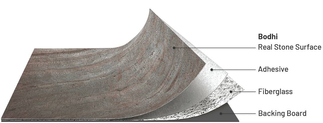 Our nature stone veneers can be installed at least 6 times faster than traditional stone slabs or porcelain, requiring significantly less labor, yet still providing the best results. The weights are: 24”x48” sheets range from 3 – 5 lbs, 48”x96” from 11 – 16 lbs, and 48”x120” from 16 - 22 lbs, easily handled by 1-2 persons.