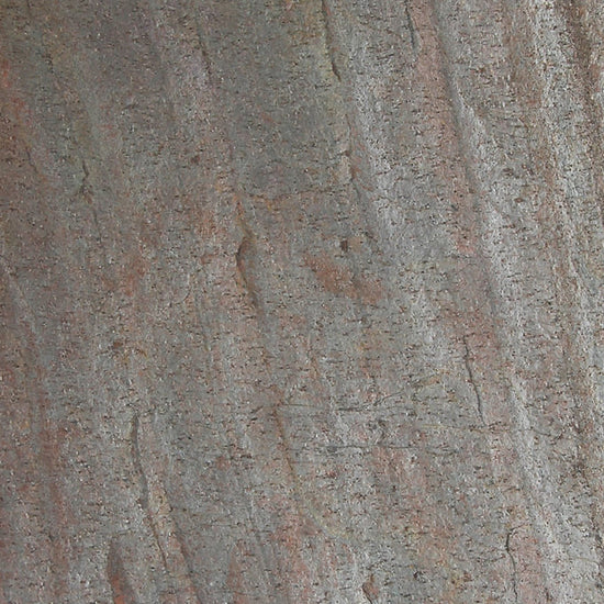 A slate defined by subtle gray, red and copper tones. Sprays of charcoal gray dots add rich definition to the stone.