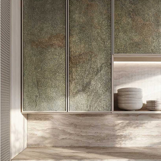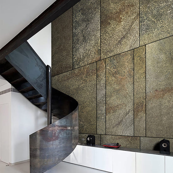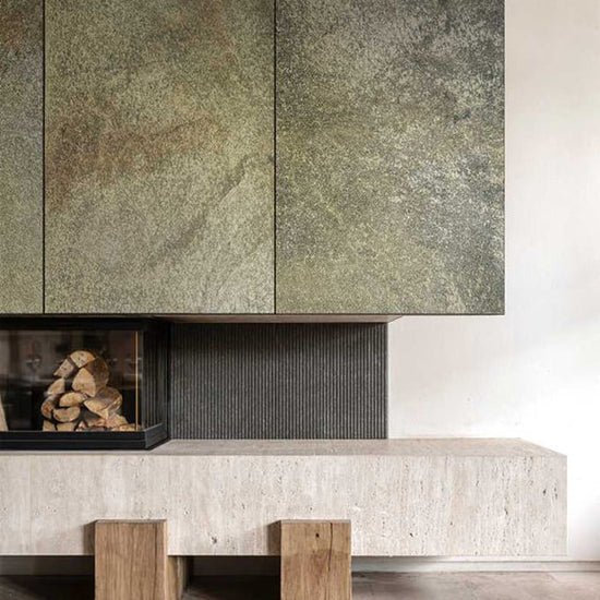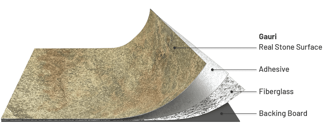 A strikingly ethereal stone with an understated finish, Gauri mixes delicate shades of gold, red, pewter and green for a smoothly modern look.