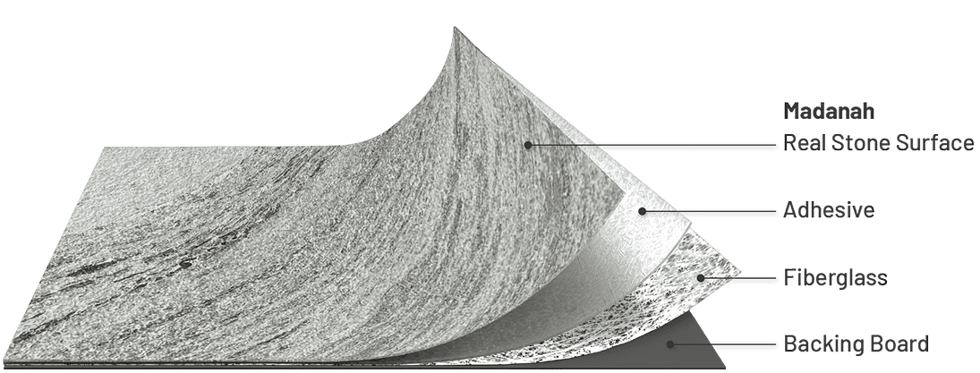 Our nature stone veneers can be installed at least 6 times faster than traditional stone slabs or porcelain, requiring significantly less labor, yet still providing the best results. The weights are: 24”x48” sheets range from 3 – 5 lbs, 48”x96” from 11 – 16 lbs, and 48”x120” from 16 - 22 lbs, easily handled by 1-2 persons.