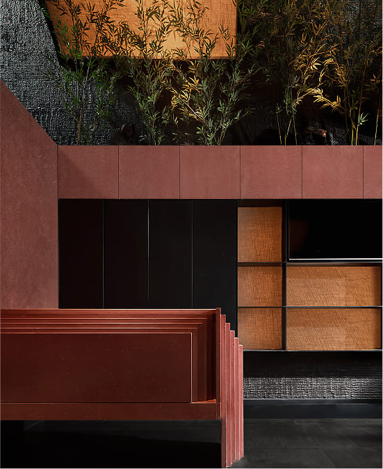 This durable monochrome sandstone is well suited for exteriors, while also complementing warm-toned interiors with finishes such as corten steel, rich hardwood and dark-colored stone. Quarried at our facility in India’s Kufri mountains, our Moonga series features a highly resilient surface hewn from 100% natural sandstone and hand-cut by expert craftsmen. Sandstone has naturally low levels of absorption and high compression strength, so Moonga is equally suitable for both indoor and outdoor usage, particularly as cladding. This endlessly durable product can be applied to hardwood, concrete, glass, metal and tile surfaces.