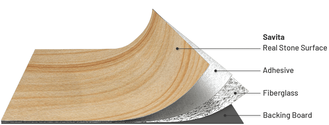 Our nature stone veneers can be installed at least 6 times faster than traditional stone slabs or porcelain, requiring significantly less labor, yet still providing the best results. The weights are: 24”x48” sheets range from 3 – 5 lbs, 48”x96” from 11 – 16 lbs, and 48”x120” from 16 - 22 lbs, easily handled by 1-2 persons.
