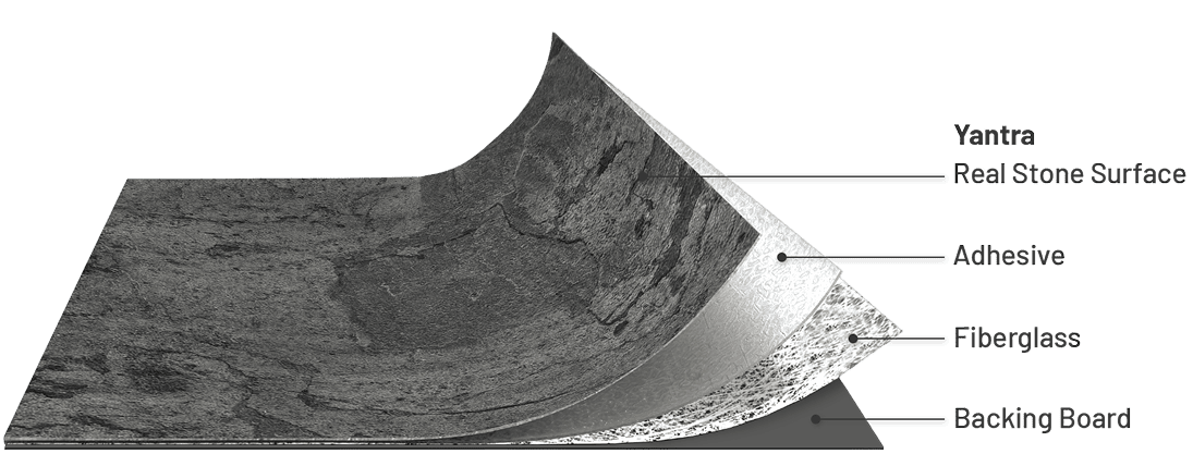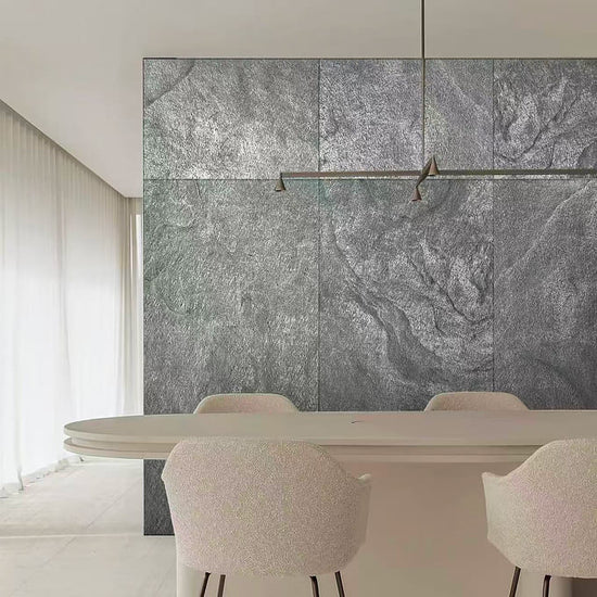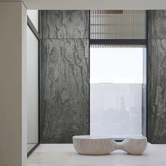 Moody with subtle green and yellow tones, this slate has a gloss silver finish and is defined by raindrop-shaped markings unique to this stone. Yantra is sourced from our quarry in the Leh Ladakh mountains of India, and subsequently hand-cut and lightly polished. This natural gem is ultrathin and ultralight, making for easy DIY application, yet notably hardy and durable. Endlessly versatile, the product can be applied to almost any surface, including hardwood, concrete, glass, metal and tile.