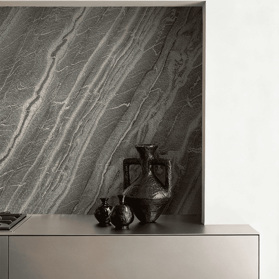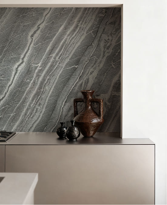 The Rudra series offers a 100% Statuario marble surface quarried in the Madhya Pradesh region of north India, an area famed for its naturally beautiful and hardy stone. Predominantly white with subtle graphite gray veining and spotting, this stone brings elegance to any space. With a simultaneously translucent and textured appearance, it works especially well when juxtaposed with classic traditional design elements. Especially durable, Isvara is suitable for both indoor and outdoor usage, and can be applied to hardwood, concrete, glass, metal and tile surfaces.
