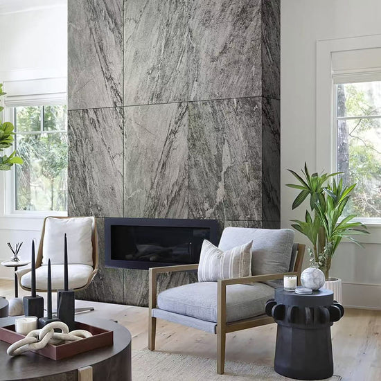 Our nature stone veneers can be installed at least 6 times faster than traditional stone slabs or porcelain, requiring significantly less labor, yet still providing the best results. The weights are: 24”x48” sheets range from 3 – 5 lbs, 48”x96” from 11 – 16 lbs, and 48”x120” from 16 - 22 lbs, easily handled by 1-2 persons.