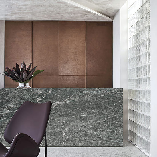 A particularly chic marble, Elan adds the flair or organic jade tone to a space. Comes with a natural matte finish, free of any artificial sheen.