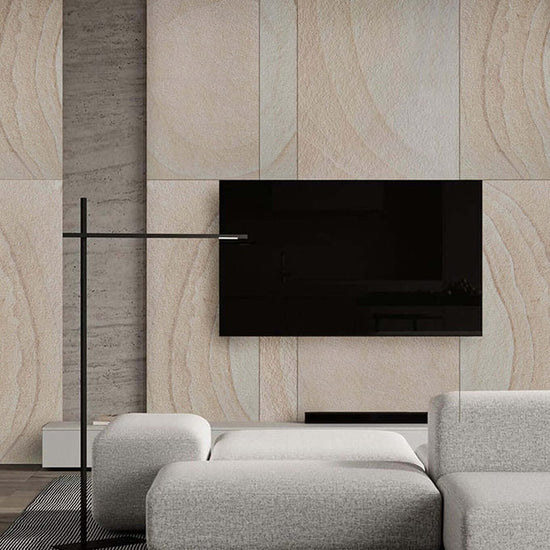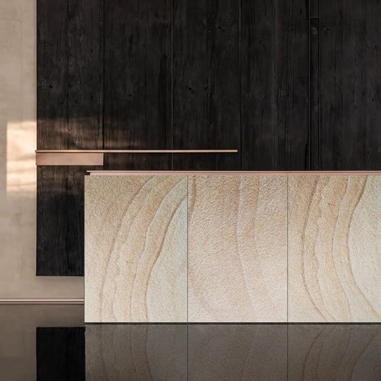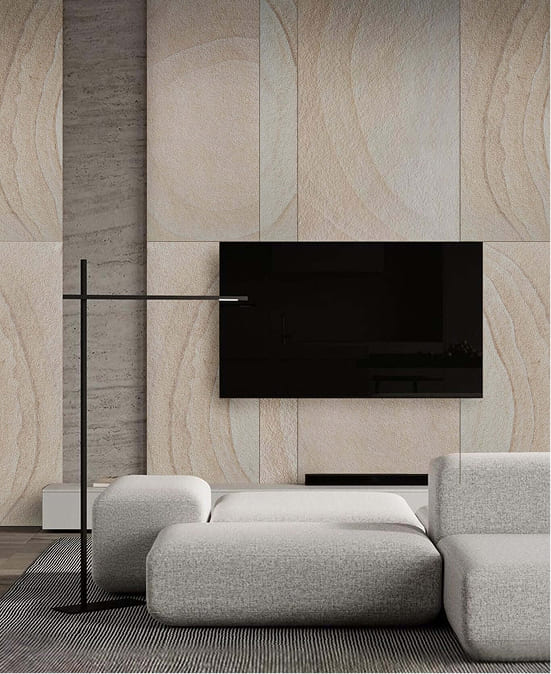 From the world that means peace in Sanskrit, this sandstone recalls a faraway beach, or sands through an hourglass. Quarried at our facility in India’s Patnitop mountains, our Shanti series features a highly resilient surface hewn from 100% natural sandstone and hand-cut by expert craftsmen. Even graining and its refined color palette of creamy gray hues make Shanti a popular choice for museums, university campuses, civic centers and houses of worship. Sandstone has naturally low levels of absorption and high compression strength, so Shanti is equally suitable for both indoor and outdoor usage, particularly as cladding. This endlessly durable product can be applied to hardwood, concrete, glass, metal and tile surfaces.