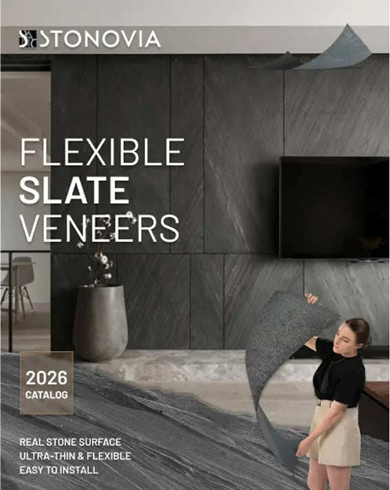 Complete installation instructions for Slate, Marble, and Sandstone flexible veneers — tools needed, preparation, and step-by-step method.