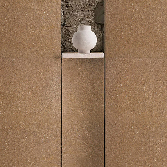 A warmly taupe sandstone that blends well with nature and lush landscapes. Well suited for exteriors, as well as interiors that incorporate materials such as hardwood, corten steel and dark-colored stone. Quarried at our facility in India’s Srinagar mountains, our Ruc series features a highly resilient surface hewn from 100% natural sandstone and hand-cut by expert craftsmen. Even graining and its refined color palette of creamy gray hues make Ruc a popular choice for museums, university campuses, civic centers and houses of worship. Sandstone has naturally low levels of absorption and high compression strength, so Ruc is equally suitable for both indoor and outdoor usage, particularly as cladding. This endlessly durable product can be applied to hardwood, concrete, glass, metal and tile surfaces.