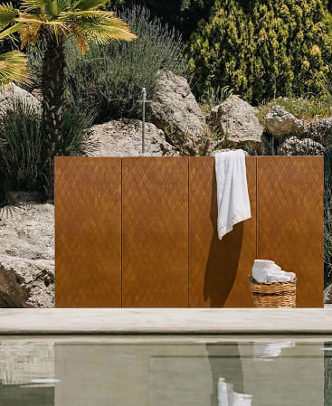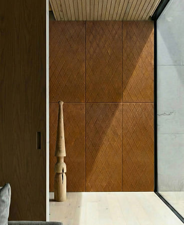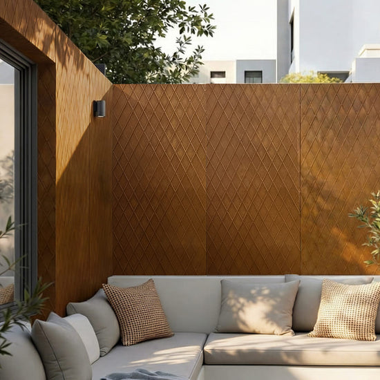 Rustic Diamond showcases a bold diamond pattern with a warm, weathered metal appearance, delivering an industrial yet refined rustic aesthetic. The design evokes aged steel and natural patina, adding depth, texture, and architectural character to any space.