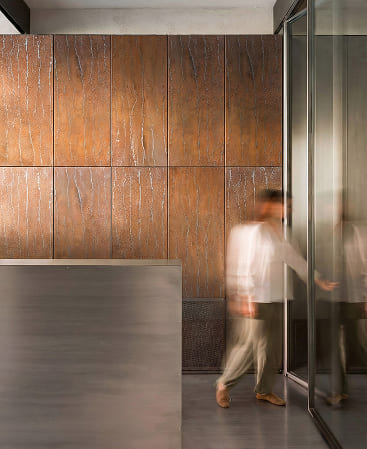 Rustic Patina captures the raw beauty of naturally aged metal, featuring an organic, weathered surface with rich tonal variation and vertical texture movement. Inspired by oxidized steel and time-worn architectural panels, this design brings depth, warmth, and an authentic industrial character to any space.